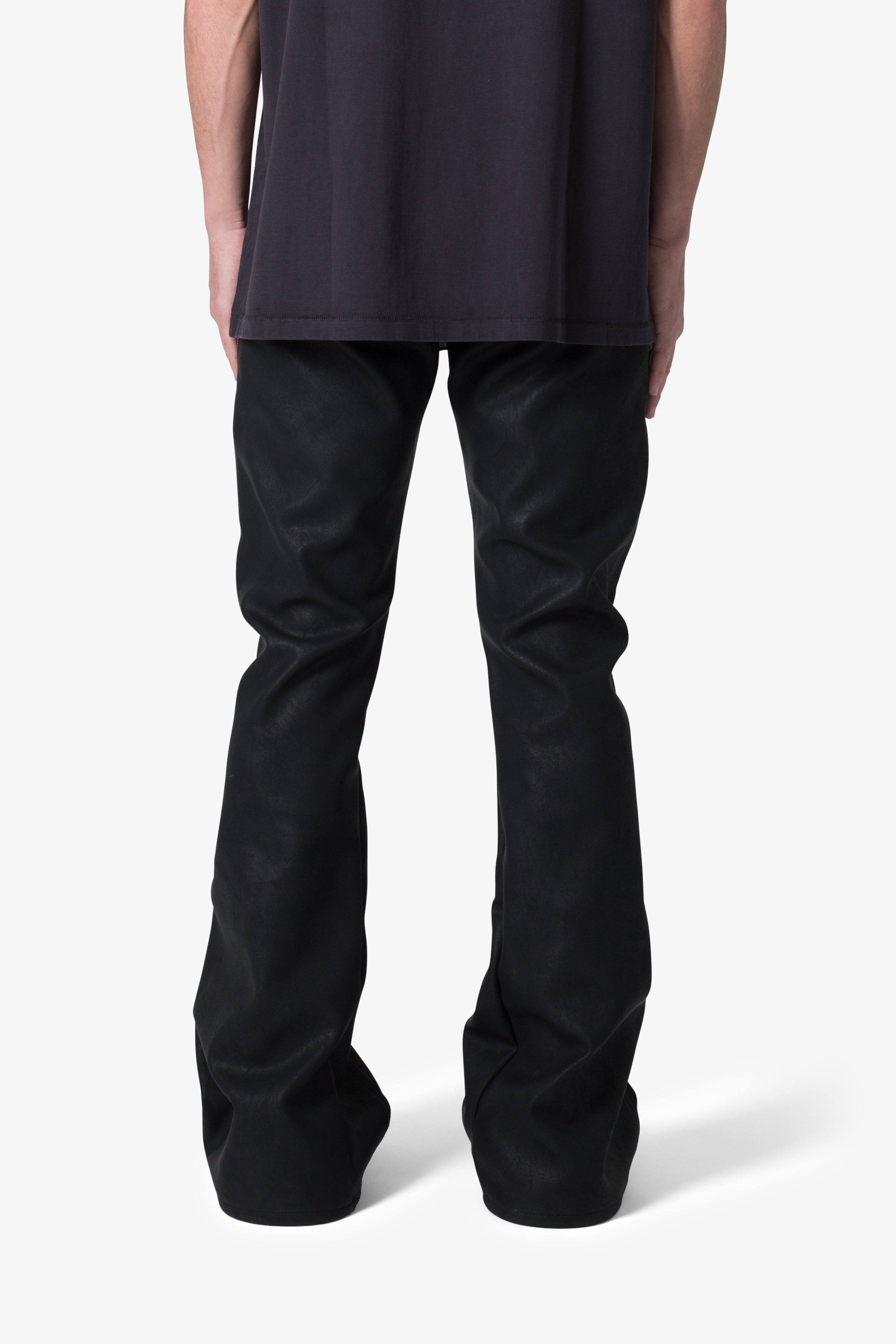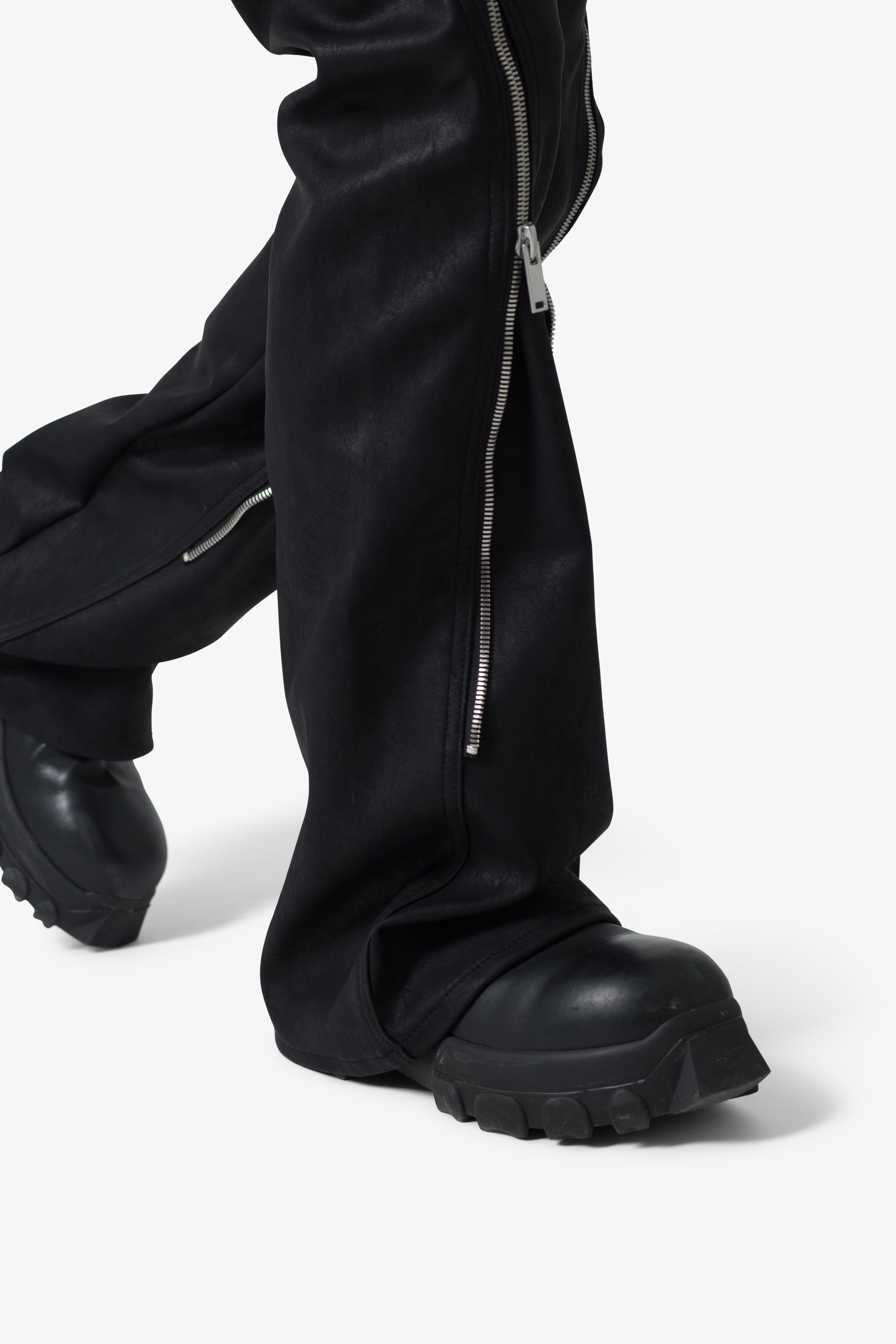 The D519 Leather Zipper Flare Pants are constructed from textured faux leather with a straight-leg cut that converts to a flare silhouette. Designed with a functional zipper running from thigh to shin, the pants can be adjusted for fit and shape. Finished with traditional five-pocket styling, zip fly, and belt loops.