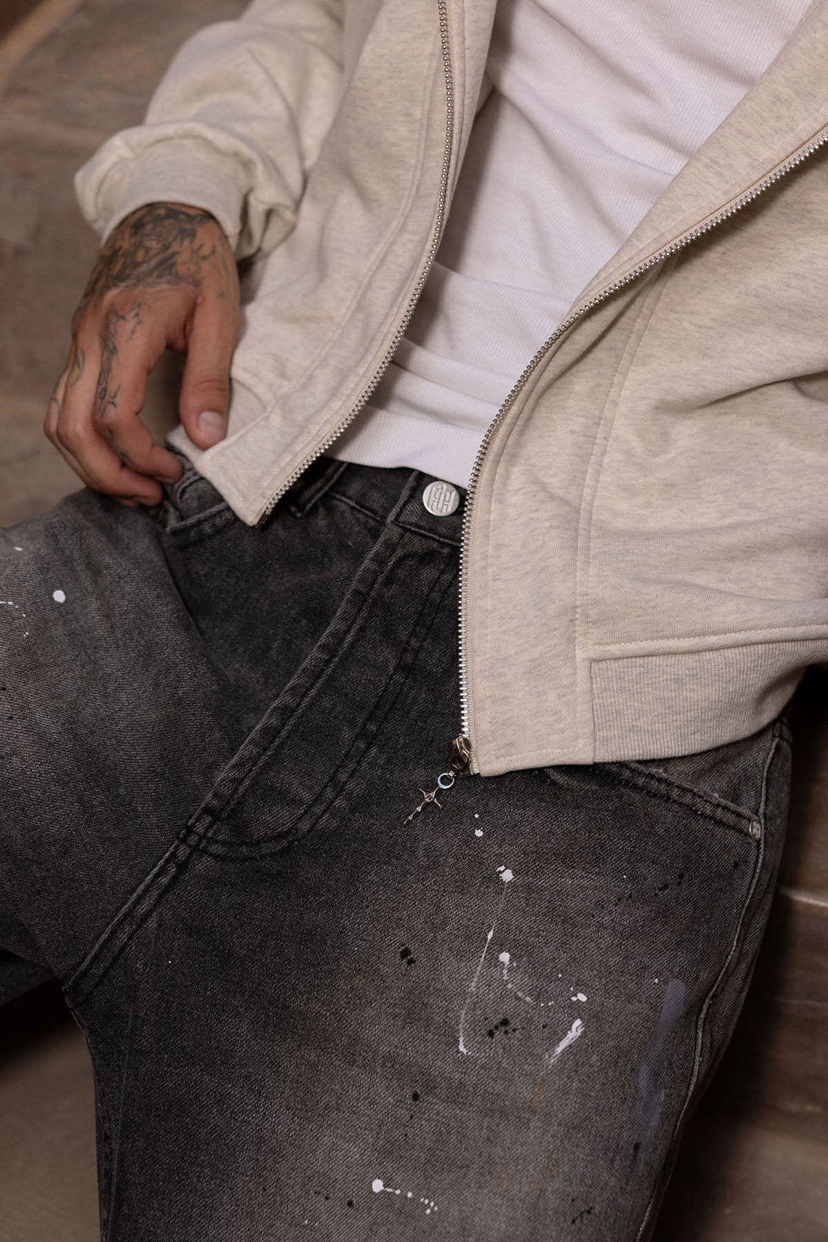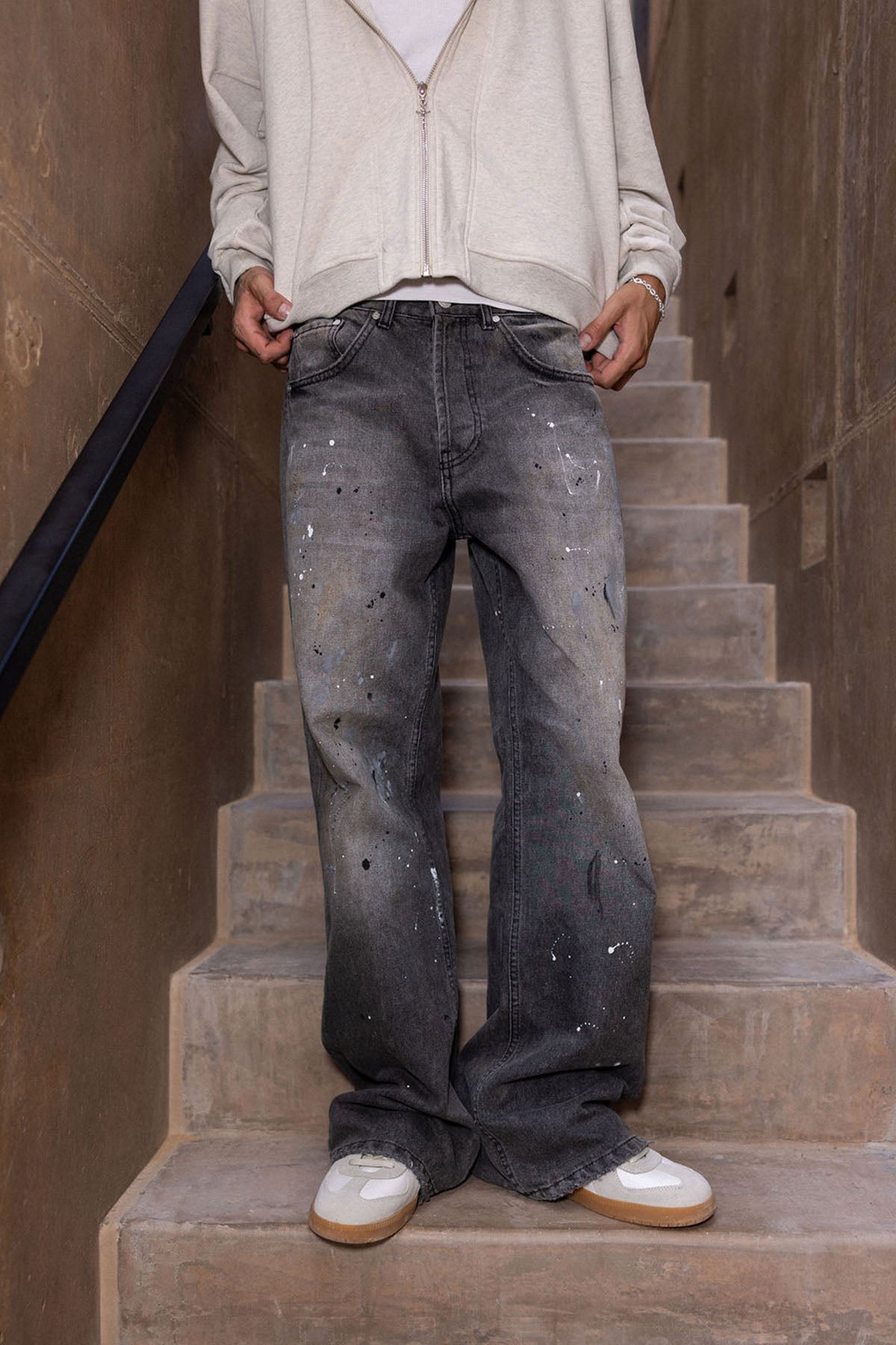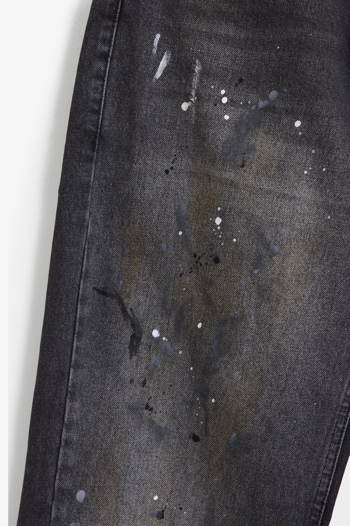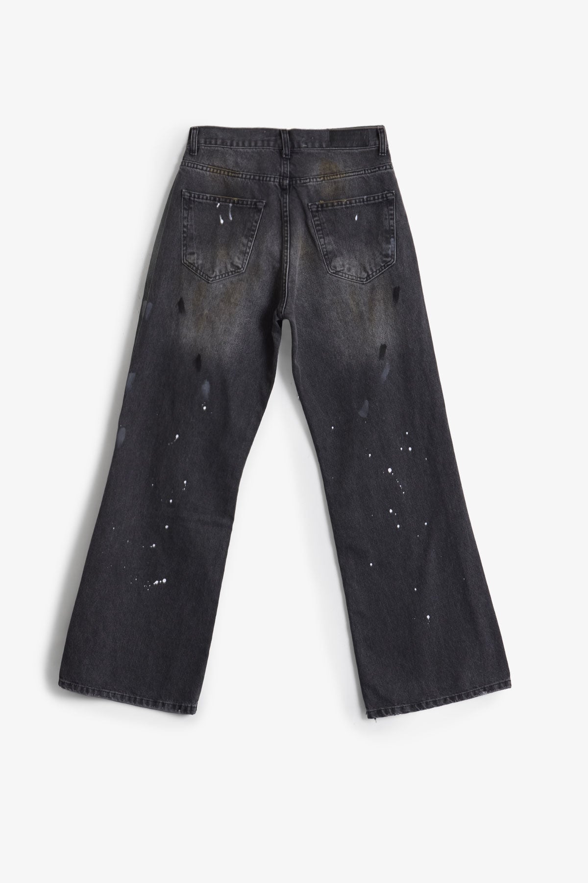 The G:04 Painted Denim is constructed from 100% cotton with a relaxed bootcut fit and an exaggerated flare. Designed with a stone wash and sanding at the thigh and seat, it features light whiskering, subtle distressing at the hems, and tonal paint splatter details throughout. Finished with a classic five-pocket layout, button fly, and custom logo jarcon at the back waistband.