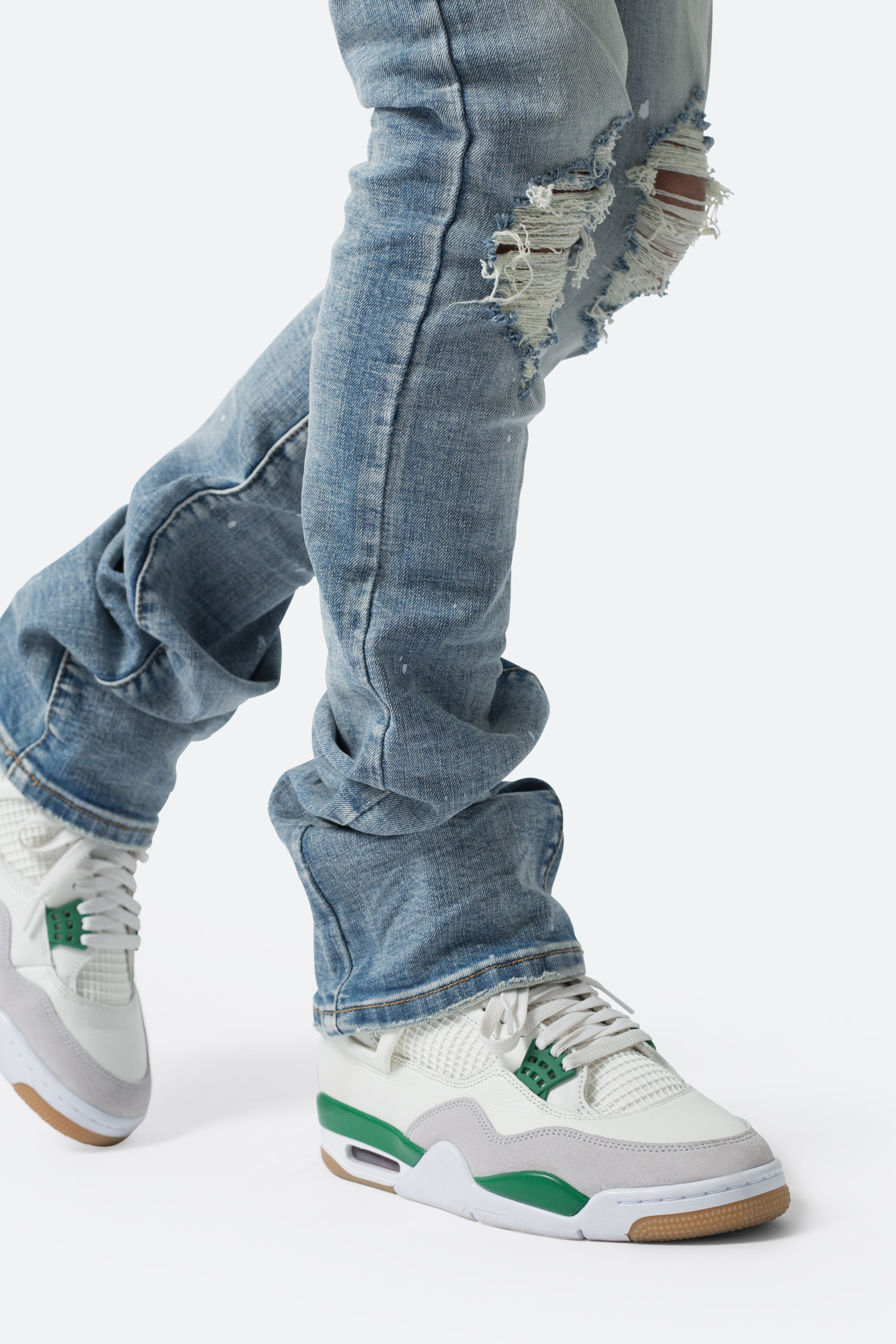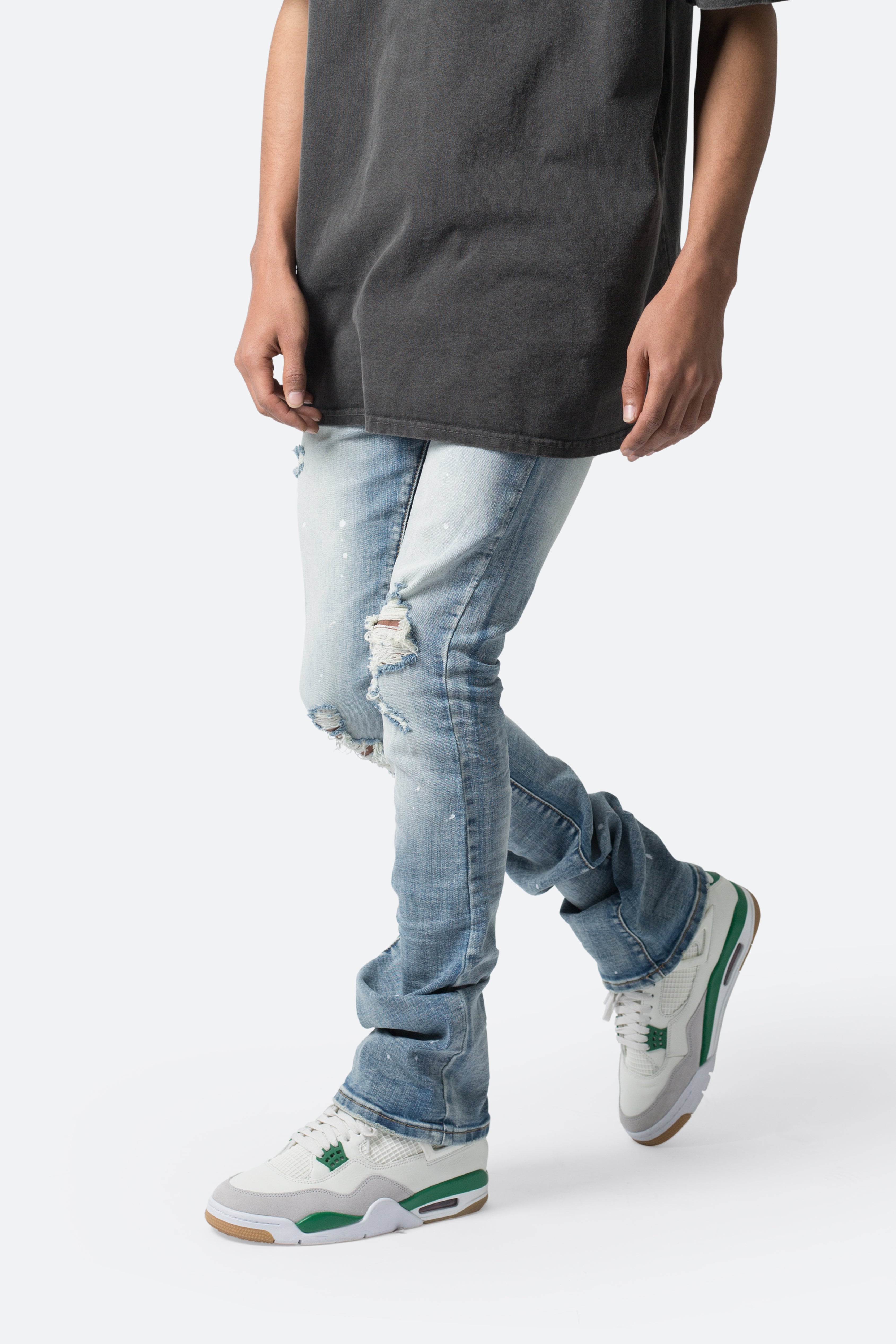 the X598 Skinny Stacked Denim is designed with our new X fit which is skinny throughout with an extended inseam for stacking and a flare at the leg opening, constructed from stretch denim, paint splatter details, distressing at the knees, and finished with a vintage wash for improved hand feel.
